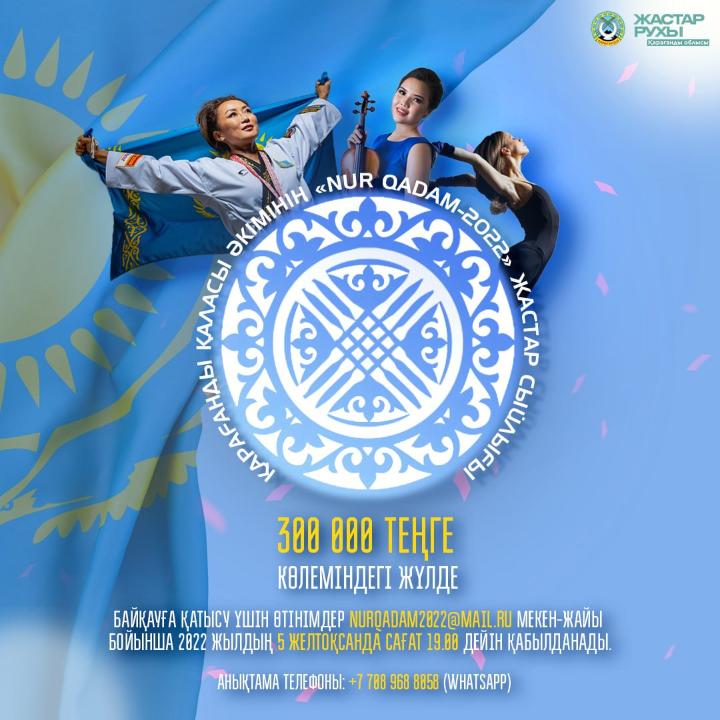 Қарағанды қаласы әкімінің «Nur Qadam – 2022» жастар сыйлығын алуға құжат қабылдануда. Бұл туралы Қалалық жастар ресурстық орталығы хабарлады.