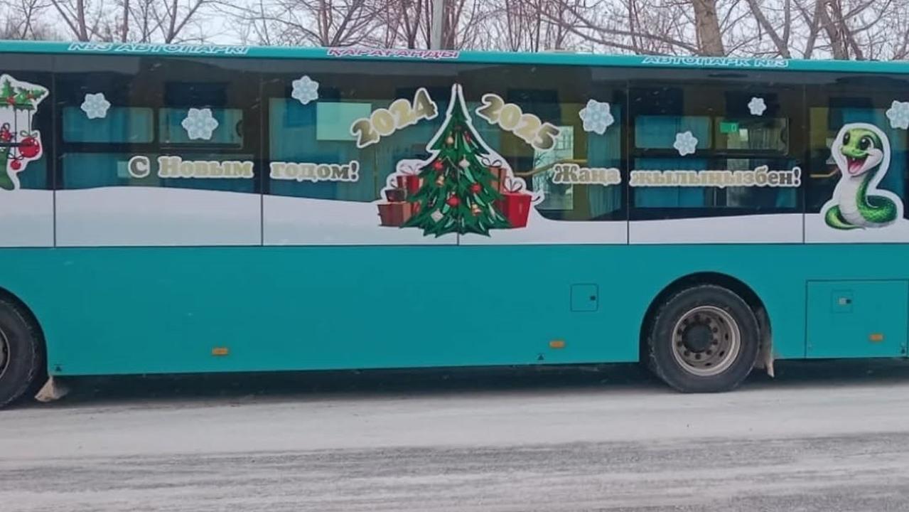 № 3 Қарағанды автопаркі жолаушыларға мерекелік көңіл-күй сыйлайды. Маршруттарға Жаңа жылдық безендірілген автобустар шықты.