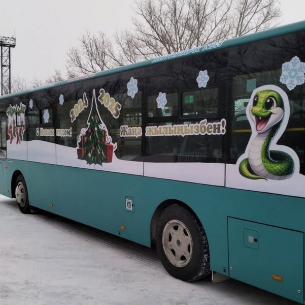 Қарағанды көшелерінде Жаңа жылдық безендірілген автобустар жүреді