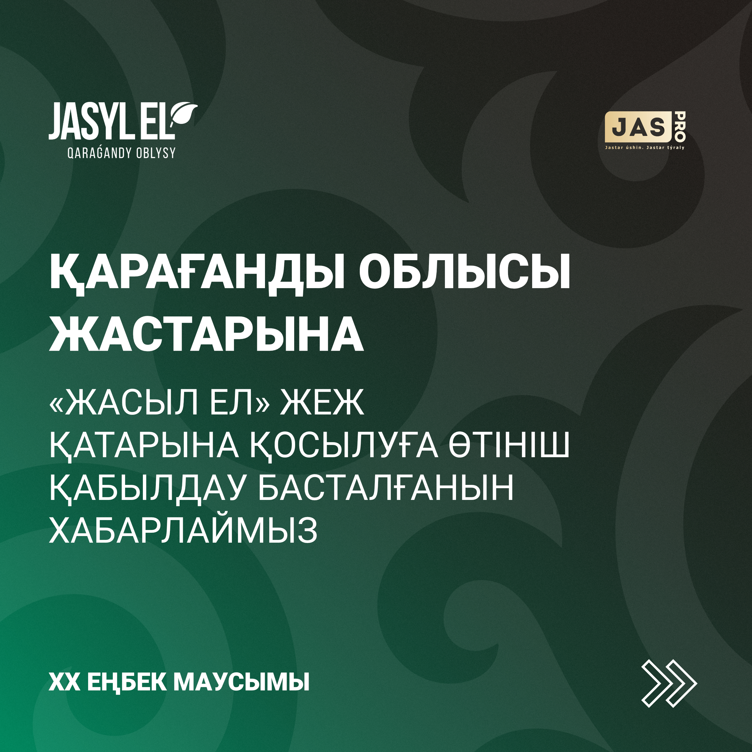 Қарағанды облысының барлық қалалары мен аудандарында «Жасыл ел – 2024» жастар еңбек жасағына қабылдау басталды. Оған аймақтың 14 жастан 34 жасқа дейінгі (қоса алғанда) тұрғындары қатысады. Құжаттар 8 мамырға дейін қабылданады.