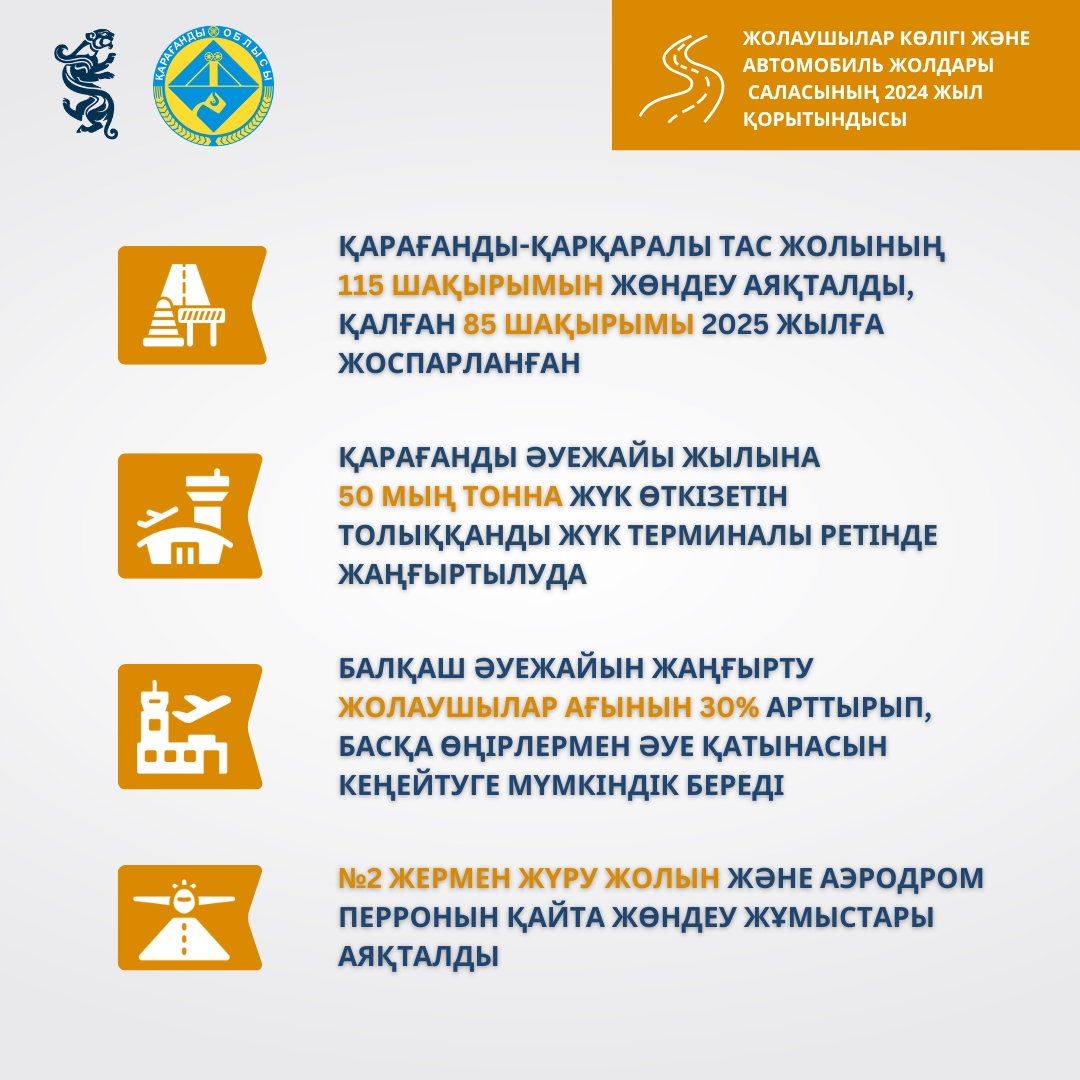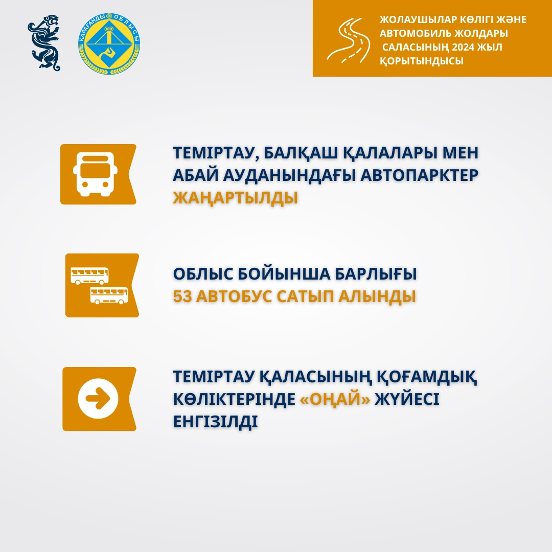 Қарағанды облысының жолаушылар көлігі және автомобиль жолдары саласының 2024 жыл қорытындысы 24.12.2024 Оқылды: 225