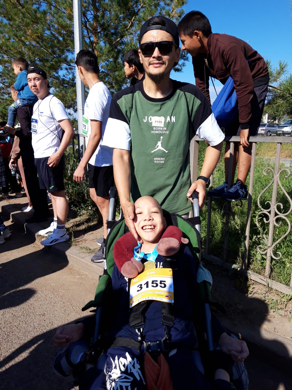 Мүгедектігі бар балалар арасында бірінші болып мәреге ағасы Серік Ағыбаймен бірге Әмір Өмірбек келді.