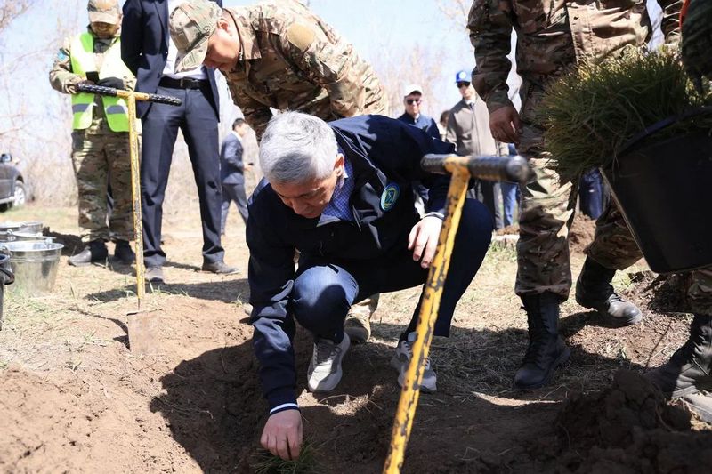 Қарағай егуге Қарағанды облысының әкімі Ермағанбет Бөлекпаев қатысты.