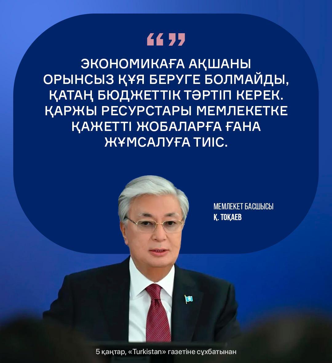 Экономикаға қаржыны бақылаусыз құю инфляцияның үдетеді. Сондықтан қатаң бюджеттік тәртіп сақталып, қаржы ресурстары тек мемлекет үшін басым әрі қажетті жобаларға ғана бағытталуы тиіс. Қатаң бюджеттік тәртіп, тек шығындарды қысқарту емес, ең алдымен қаржы ресурстарын ел дамуына шын мәнінде қажет салаларға бағыттау деген сөз. Инфрақұрылым, білім, денсаулық сақтау, өндіріс пен инновация сияқты стратегиялық бағыттарға салынған инвестиция ғана болашақта экономикалық өсім мен әлеуметтік тұрақтылықты қамтамасыз ете алады.