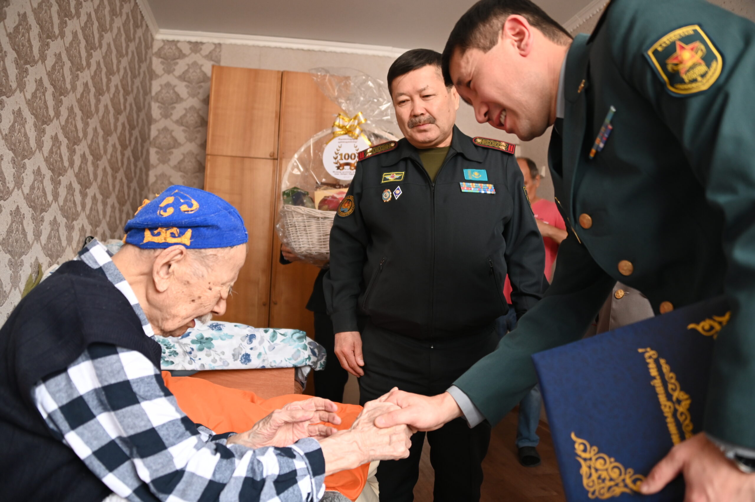– Әскери қызметкерлер ардагерге ақ тілектерін арнап, келесі жылы аталып өтетін Ұлы Жеңістің 80 жылдығын сөз етті. 2025 жылы өтетін Жеңіс күні – ардагерлердің және Отан үшін от кешкен ұрпақтың еселі еңбегі мен жанқиярлық ерлігінің нәтижесі, біз ардагердің батасын алдық. Бейбіт күннің қадірін, соғыстың сұрапыл жылдарын көрген қарияға көрсетілген бұл құрмет – жастарға үлгі, ұлт тарихын ұлықтаудың жарқын белгісі деп ойлаймын. Ерлік ешқашан ұмытылмайды. Соғыс даласында Отан үшін кеудесін тосқан ардагердің бейбіт өмірде де елге қызмет ету жолындағы ерлігі, қажырлы еңбегі мен жанкештілігі әрдайым ел жадында сақталады, – деп атап өтті Қарағанды облыстық қорғаныс істері жөніндегі департамент бастығының орынбасары, подполковник Еркебұлан Мұстағұлов.