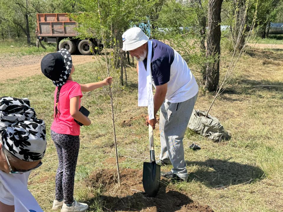 Акцияға ҚХА жанындағы Аналар кеңесінің мүшесі Перизат Күлімбетова да отбасымен бірге қатысып, немерелеріне ағаш отырғызудың маңызын түсіндірді: