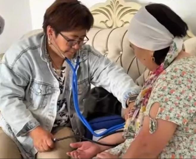 Салтанат Әлмағанованың кәсібіне деген адалдығы мен жанкештілігі – ауыл медицинасының шынайы бейнесі. Осындай мамандардың арқасында шалғай ауылдардағы тұрғындар уақытында медициналық көмек алып отыр. Мәку Серікова ауылдағы ең жасы үлкен қария. Қан қысыма жиі көтерілетіндіктен үнемі мамандар бақылауында. Тыл ардагері дәрігерлер шақырғанда жылдам жететініне риза.