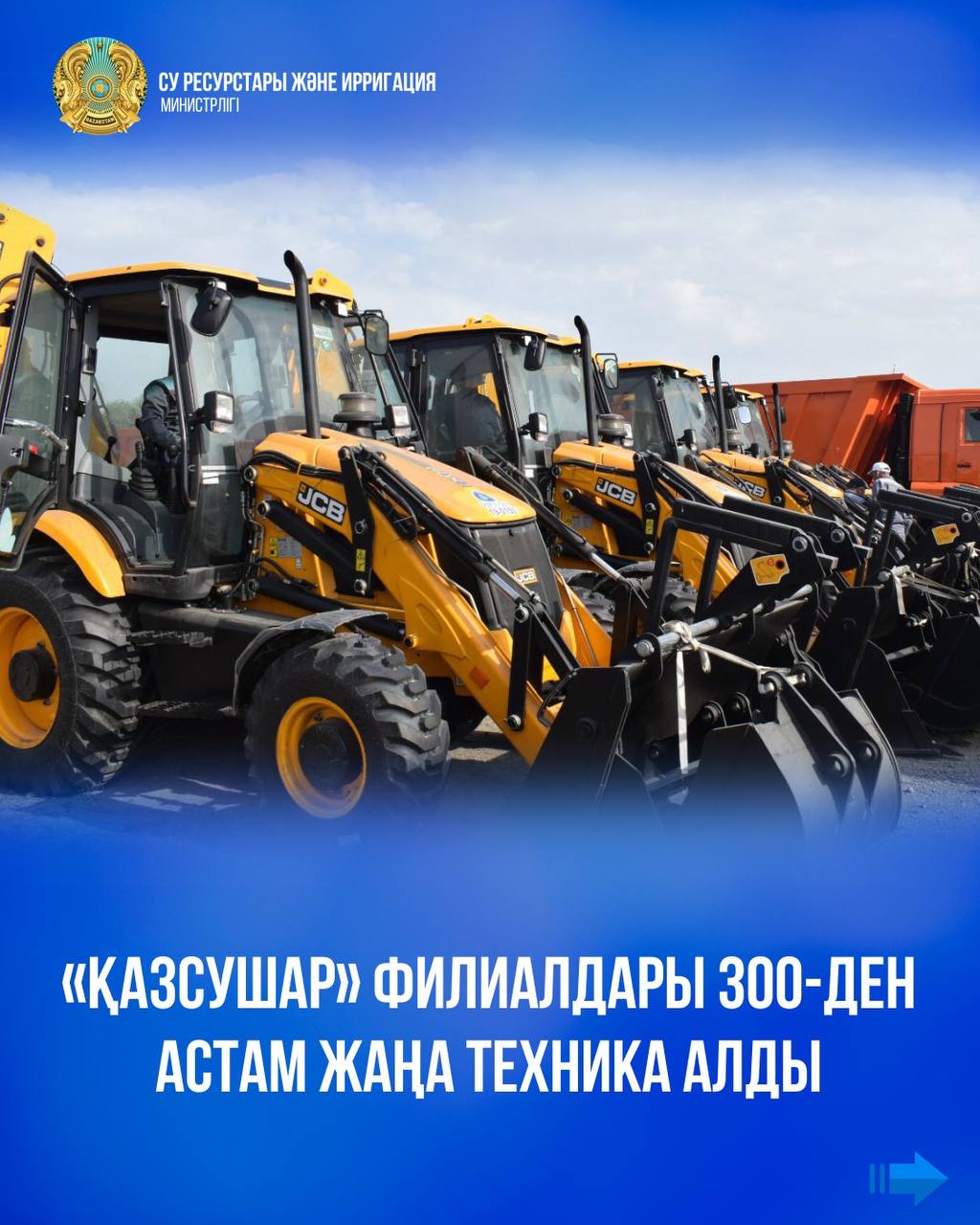 Су ресурстары және ирригация министрлігі «Қазсушар» республикалық мемлекеттік кәсіпорнын жалпы саны 757 техникамен қамтамасыз етуді жоспарлап отыр. Жұмыс бес кезеңмен жүргізіліп жатыр. Қазіргі таңда алғашқы төрт кезең бойынша 636 техника жеткізуге келісімшарттар жасалды.