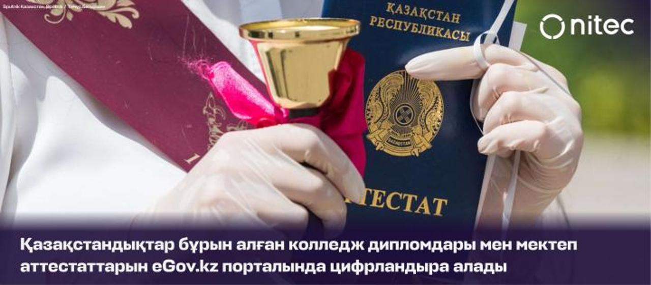eGov.kz порталында білім туралы құжаттарды цифрландыруға арналған қызмет қолжетімді. Енді азаматтар тек қате деректерді түзетіп қана қоймай, құжаттың цифрлық нұсқасын жасауға өтініш бере алады. Қызмет тек бұрын алынған дипломның немесе аттестаттың сканерленген көшірмесі болған жағдайда ғана қолжетімді.