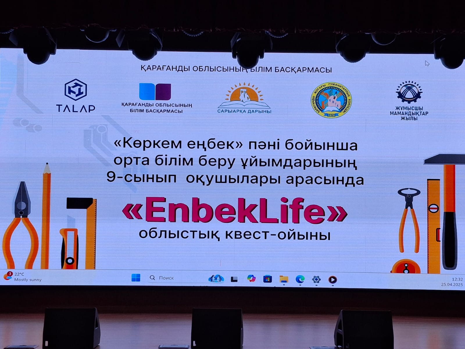 Қарағанды жоғары гуманитарлық колледжі мен «Сарыарқа дарыны» балаларға қосымша білім беру аймақтық ғылыми-практикалық орталығының ұйымдастыруымен 2025 жылдың 25 сәуірінде «Кәусар» оқушылар сарайында ерекше интеллектуалды сайыс өтті. «Жұмысшылар мамандығы» жылы аясында өткізілген «ЕңбекLife» облыстық квест-ойынына аймақтың әр түкпірінен келген 9-сынып оқушыларынан құралған 8 команда қатысты.