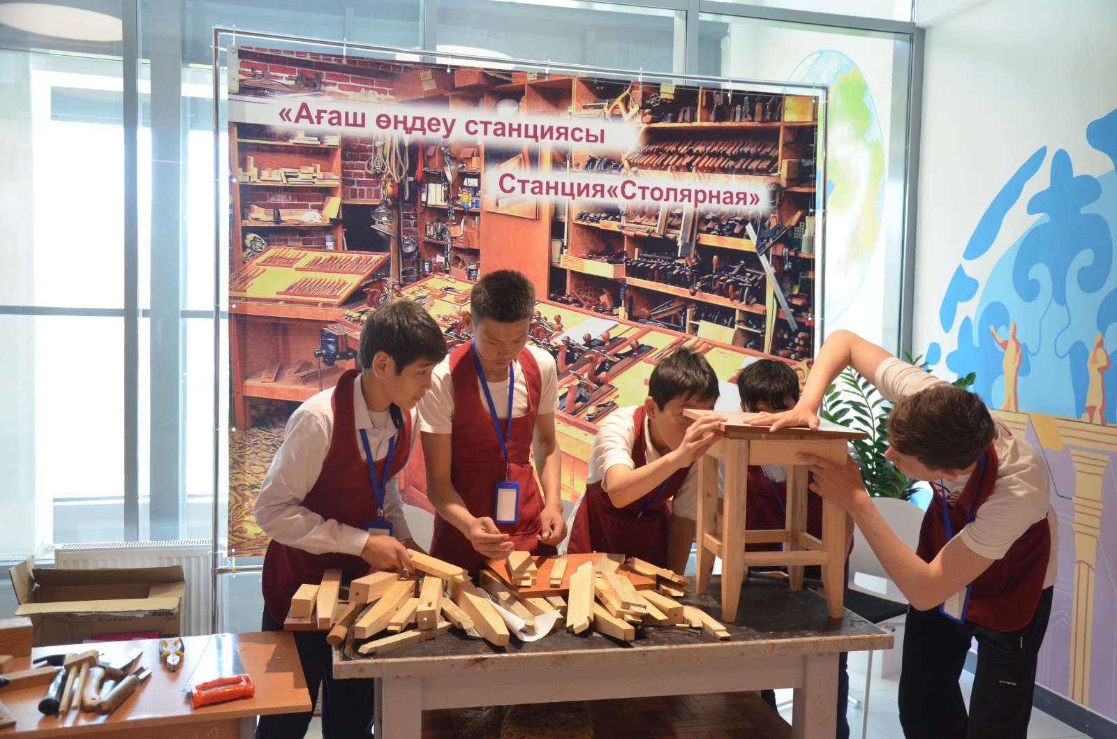 Квест-ойыны 6 қызықты станциядан тұрды. «Әдебиет» станциясында оқушылар еңбек пен мамандықтар туралы мақал-мәтелдер мен жұмысшы мамандықтарының тізімін жарыса жазды. «Слесарь» станциясында монтаждық сызба бойынша бұйым құрастырып, бекіту элементтерін дұрыс сұрыптады. «Ағаш өңдеу» станциясында да сызбамен жұмыс істеп, ағаш өңдеу құралдарының атауларын еске түсірді. «Электр» станциясында қарапайым электр тізбегін құрастырып, әріптері араласқан сөздерден электрге қатысты терминдерді тапты. «Құрылыс» станциясында қолда бар материалдардан ғимарат макетін жасап, құрылыс құралдарының атауларын жазды. Ал «Автошеберхана» станциясында қозғалатын автомобиль макетін құрастырып, оған ат қойып, көптеген автомобиль маркаларын атады.