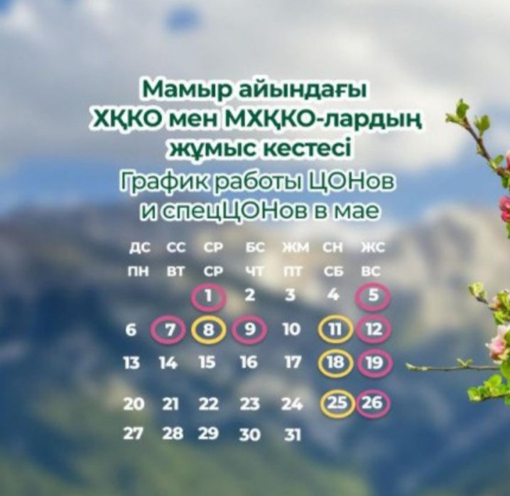 4 мамырда (сенбі) орталықтар 18:00-ге дейін, кезекшілер 20:00-ге дейін жұмыс істейді.