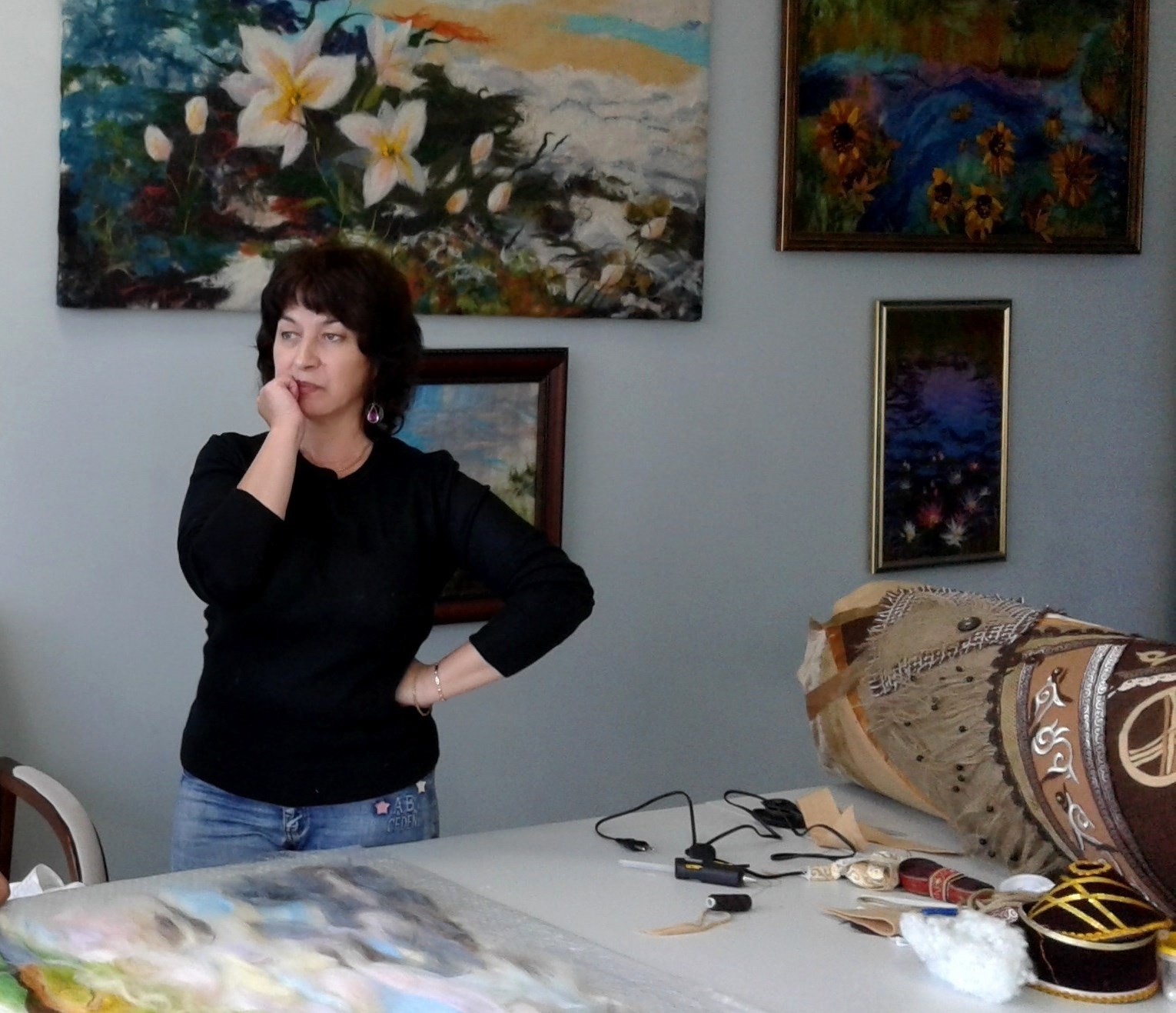 – Қарағанды облысы Қазақстан халқы Ассамблеясының Достық үйінде Халық шығармашылығы орталығының меңгерушісі болып жұмыс істеген кезімде біз әр іс-шарада менің де, этномәдени бірлестіктер суретшілерінің де көрмелерін өткізетінбіз. Бұл үшін біз үлкен мольберттер сатып алдық, оларды барлығы, соның ішінде біздің бірлестікке келушілер де пайдаланды. Шеберлік сабақтары негізінен киіз басу бағытында жүргізіліп, көпшіліктің көңілінен шықты. Біздің есеп бойынша, бір тоқсанда сабаққа 2 600 адам қатысты. Олардың арасында ең кішісі 4 жаста, ең үлкені 83-те. Мектеп оқушылары келетін. Ең белсенді қатысқан поляк, еврей, грек, корей, вайнах, неміс этномәдени бірлестіктерінің өкілдері болды. Біз Достық үйінде мүмкіндігінше жастар мен жасөспірімдерді халық қолөнерімен айналысуға тартуға тырыстық. Бұл жерде үлкен құндылық бар: жастарымыз ұлттық салт-дәстүрлерді білуі және құрметтеуі, көпұлтты мемлекетіміздің тыныштығы мен гүлденуі үшін жауапты болуы керек. Мен бізге, өнер адамдарына, осындай ерекше талантты «жоғарғы күш» иесінің тегін бергенін, біз мұны бағалауымыз керек екенін түсіндіруге тырысамын. Сол себепті біздің әлем мен халық алдында екі есе жауапкершілігіміз бар. Біз әлемге жер бетіндегі ең ғажайып нәрселерді – сұлулықты, жақсылықты және мейірімділікті – жеткізуге міндеттіміз.
