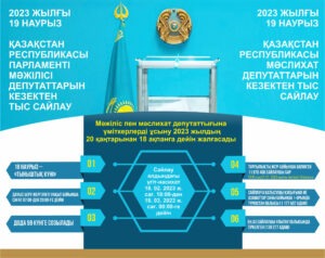 Жалпы, Мәжіліс пен мәслихат депутаттығына үміткерлерді ұсыну сайлауды тағайындау туралы Жарлық жарияланған күннен басталады. Сөйтіп, 20 күнге созылады. Осылайша, 20 қаңтардан 18 ақпанға дейін жалғасады. Сайлау алдындағы үгіт-насихат 18 ақпан күні сағат 18:00-де басталып, 18 наурыз сағат 00:00-ге дейін. 18 наурыз – «тыныштық күні». Сайлау күні учаскелерде дауыс беру жергілікті уақыт бойынша сағат 07:00-ден 20:00-ге дейін. Бұдан кейін учаскелік сайлау комиссиялары дауыс санауға кірісіп, оның нәтижесі туралы хаттама толтырады. Дода 59 күнге созылады.