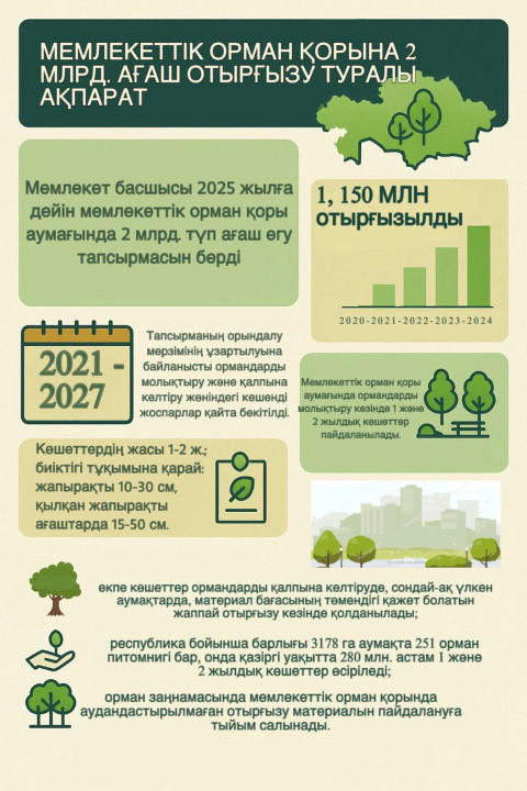 2021-2024 жылдары республика бойынша барлығы 1 млрд. 150 млн. ағаш отырғызылды.