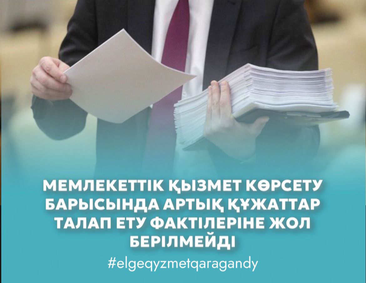 МЕМЛЕКЕТТІК ҚЫЗМЕТ КӨРСЕТУ БАРЫСЫНДА АРТЫҚ ҚҰЖАТТАР ТАЛАП ЕТУ ФАКТІЛЕРІНЕ ЖОЛ БЕРІЛМЕЙДІ