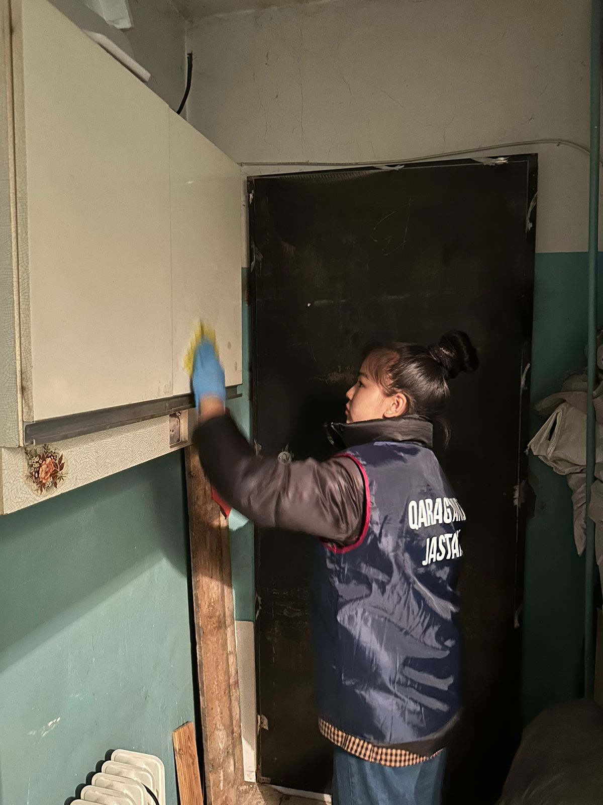 «Таза Қазақстан» экологиялық акциясының «Өнегелі ұрпақ» апталығы аясында Қарағанды қаласының Жастар ресурстық орталығының волонтерлері Ұлы Отан соғысының 101 жастағы майдангері Сәттіғұлов Сұңғат Смағұлұлына барып көмек көрсетіп, ардагерді келе жатқан Жеңіс күнімен құттықтап қайтты.