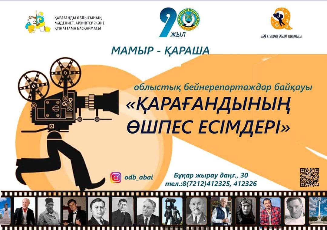 Абай атындағы Қарағанды облыстық балалар кітапханасы 8-10 сынып оқушыларын «Қарағандының өшпес есімдері» облыстық байқауына қатысуға шақырады. Байқауға қаланың дамуына елеулі үлес қосқан немесе қосып жатқан Қарағанды тұрғындары туралы қазақ және орыс тілдерінде бейнерепортаждар қабылданады.