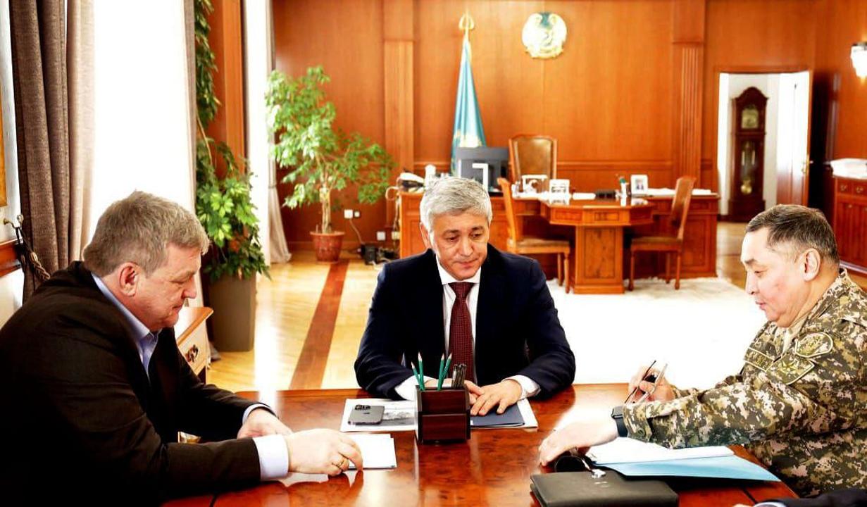 Облыс орталығында генерал-лейтенант Мұхамеджан Таласов аймақ басшысы Ермағанбет Бөлекпаевпен кездесті.
