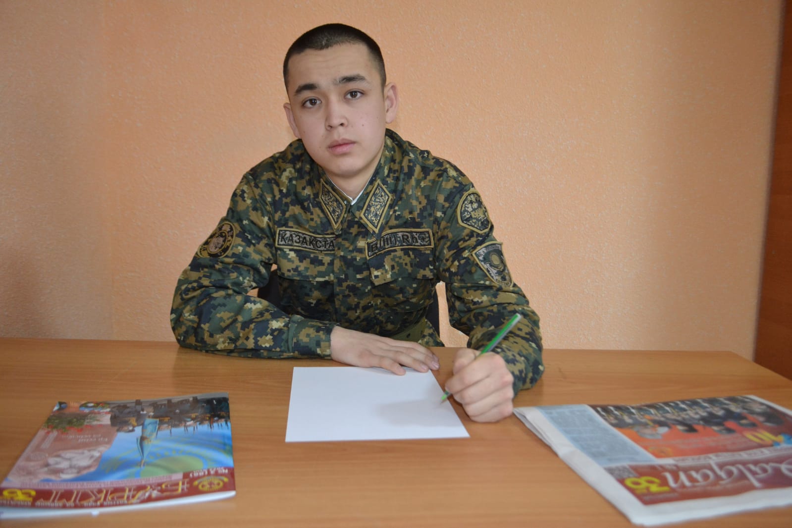 Өзіме келетін болсақ менде бәрі жақсы. Әскери қызметтің қыр-сырын меңгеріп қатал тәртіпке де үйреніп қалдым. Отан алдындағы борышымды адал атқарып, сіздермен аман-есен қауышамыз деген сенімдемін. Әскери өмірде қызықты сәттер болатынына күмәнім жоқ. Ауылдағы достарыма сәлем жолдай салыңыздар. Отан алдындағы борышын өтеуден ешкім қашпасын, себебі әскер өмір мектебі, көп нәрсеге үйретеді екен. Әскерге келгенде жан-жақтан достарым пайда болады. Мен бос уақытымда сіздерге арнап өлең шумақтарын шығарып, қалам тербеп қоямын. Келесі хаттарымда міндетті түрде шығарған өлеңдерімді жазып жіберемін.
