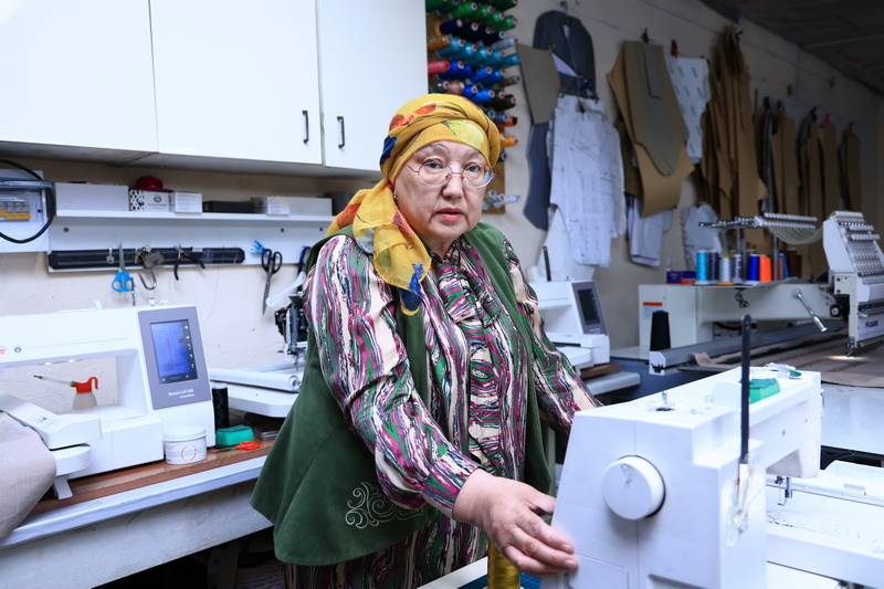 Қарағандылық Гүлсім Кенжебекова да ұлттық киім тігумен айналысады. Ол күйеуінің гаражын тігін цехына айналдырып, қазақи үлгідегі киімдер мен қыз жасауларын тігеді. 2023 жылы мемлекеттен 37 млн теңге көлемінде несие субсидиясын алып, кәсібін кеңейтуге мүмкіндік алды.