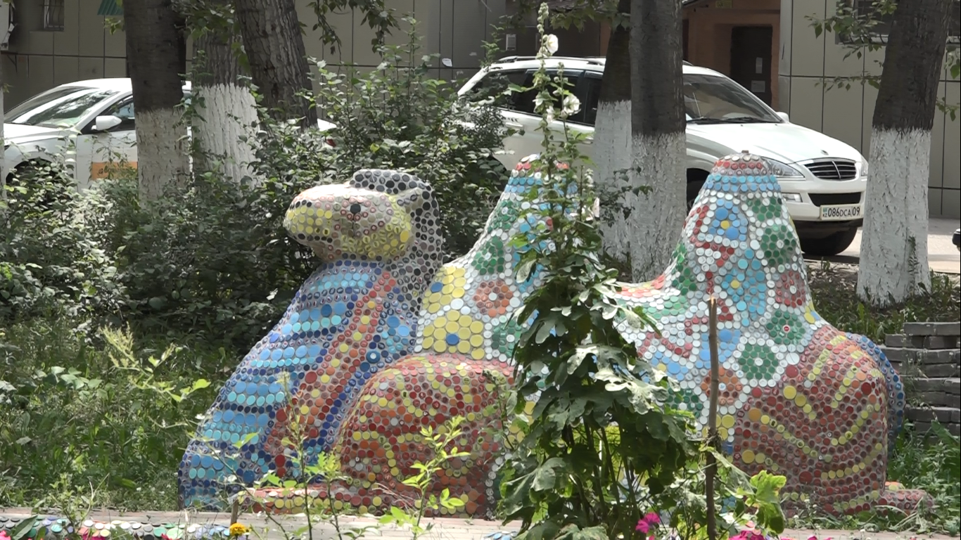 Бұқар жырау даңғылындағы, 28 мекенжайында орналасқан үйдің ауласы көз қуантарлық үлгіде безендірілген. Үй тұрғыны Павел Король пластикалық қақпақтардың мозаикасымен түрлі-түсті жолдар жасауда.