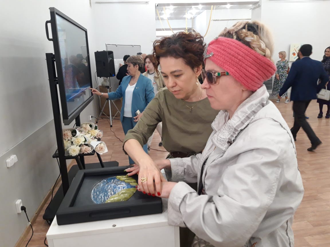 – Былтыр маған «біз көру қабілеті бұзылған адамдарға өнерді қалай жеткізе аламыз, осы сезімдерге қалай жақындата аламыз?» деген ой келді, өйткені өнермен араласу өте маңызды, өмір сүру сапасы жақсарады, денсаулығымыз жақсарады, яғни өнерде өмір сапасына әсер ететін көптеген фактор бар. Сондықтан қызығушылық болды. Бұл қызығушылық мені қатты баурап алды, сондықтан біз осы көрмені дайындадық. Бұл – барлық санаттағы адамдарға қолжетімді өнер жасау жолында болған ойлар мен ізденістердің нәтижесі. Көрмеге 13 кенеп, 10 мүсін және 5 тактильді жалпақ картина қойылған. Көрмеде тактильді экспонаттар ұсынылған, яғни 8 адамнан тұратын команда. Біз осы жобамен екі ай жұмыс істедік, музыкалық трек жасап, тактильді картиналар, мүсіндер жасап шықтық. Қолмен ұстап көруге, авангардтық өнер әлеміне енуге болады. Сонымен қатар қатысқан 12 адам көру қабілеті нашар және зағип жандар болды. Біз жұмыс процесінің техникасын жасадық, соның арқасында олар «Ақ кеңістік» деп аталатын сурет салды, өйткені көрме – ақ кеңістік. Және олардың бояу әсерін кенепте біздің суретшілердің көмегімен жеткізудің бірегей мүмкіндігі болды, біз олардың көздері мен қолдары болдық және олардың барлық әсерін кенептерге салдық, – дейді Евгения.
