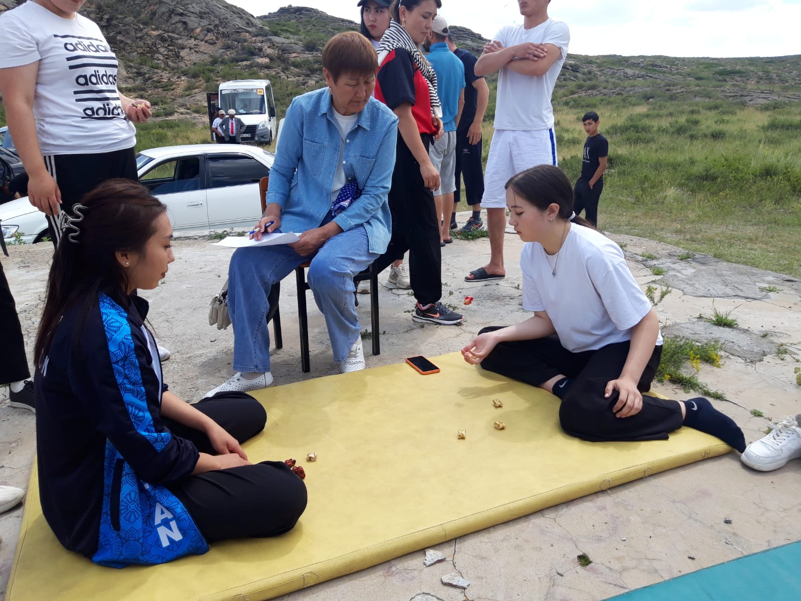 Назым Нүкүшева 18 жаста. Жарысқа Бұқар жырау ауданынан келген. Бес жылдан бері бес асықпен айналысады.