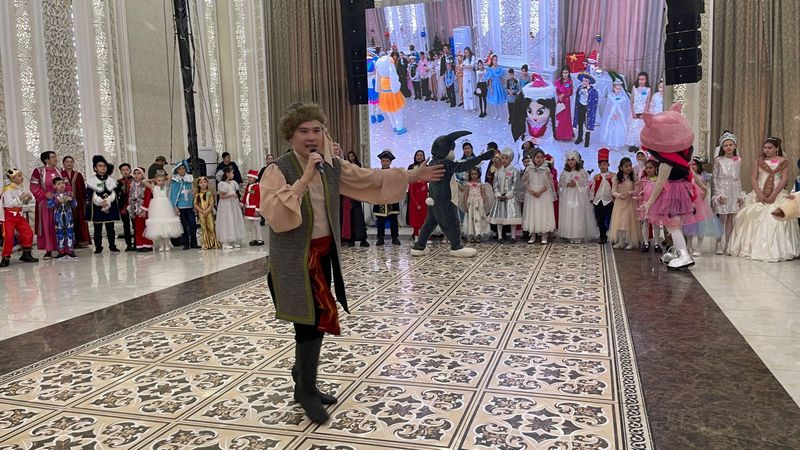 Мерекеге балалар үйлері мен мектеп-интернаттардың тәрбиеленушілері, мүгедек балалар, аз қамтылған отбасылардың балалары, сондай-ақ оқу үздіктері мен жарыстар жеңімпаздары қатысты. Олар «Қош келдің, жаңа жыл» атты театрландырылған ертегі қойылымын тамашалап, ертегі кейіпкерлерімен бірге қызықты оқиғаларға сапар шекті. Алдар Көсе мен ертегі кейіпкерлерімен бірге зұлым қарақшыларды қуып, сиқырлы саяхатқа аттанып, ойындар мен билерге қатысты.