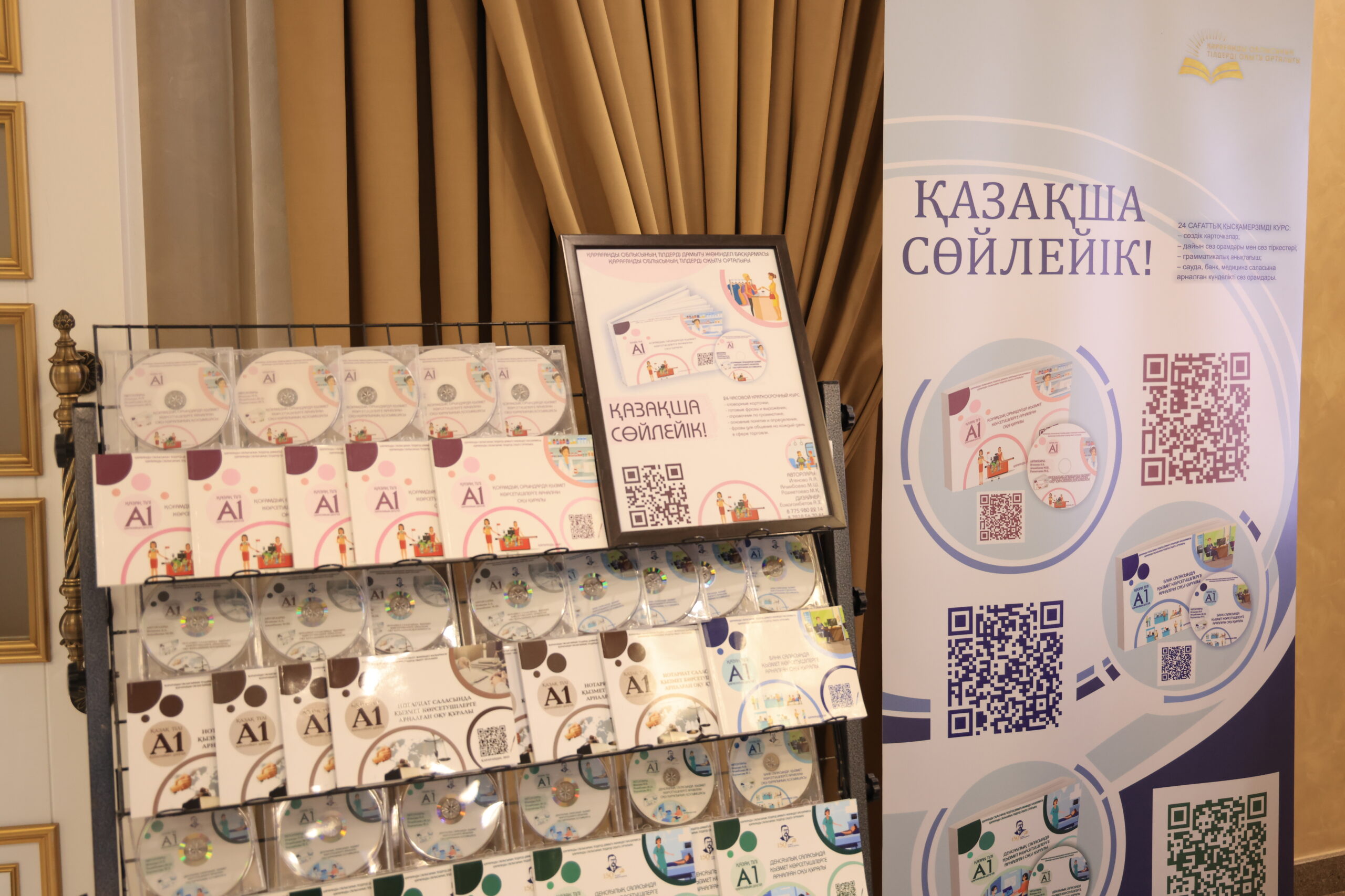 – Көрмеге соңғы үш жылда жарық көрген оқу-әдістемелік құралдар, оқу-әдістемелік кешендер, дидактикалық материалдар да қойылған. Бүгінгі форумдағы ерекшелік – «Сарыарқа» оқу-әдістемелік кешенінің үшінші басылымының тұсаукесері болды. Бұл басылымның алдыңғы оқу құралдарынан ерекшелігі – толығымен жаңадан басылып шығарылды және мұның веб-сайты бар. Кітаптың сыртында үш QR-код бар. Біріншісі арқылы веб-сайтқа өтеді. Екінші QR-код арқылы YouTube арнасына өтуге болады. Үшіншісі – осы кітаптың жеке сайты. Бұрын кітапқа қосымша дискілер берілетін. Бұл жолы ондай дискісіз QR-код арқылы сайтқа өтуге болады, – деп түсіндірді Қарағанды облыстық тілдерді оқыту орталығының директоры Алмагүл Игенова.