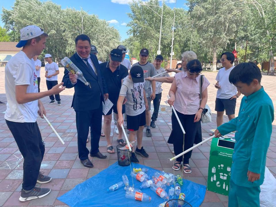– Бүгін еріктілер корпусының ұйымы Дүниежүзілік қоршаған ортаны қорғау күніне арналған салтанатты іс-шараны бастады. Біз соған қатысып отырмыз. Осы іс-шарада байқаулар өтеді, мәселен, сурет салу, өнерге көңіл бөлу жұмысы «экология» деп аталады. Және қоқыс сұрыптау, сондай-ақ флешмоб өткізу бағдарламасын жүргізуге атсалысып отыр, – дейді ерікті Сәния Амирова.