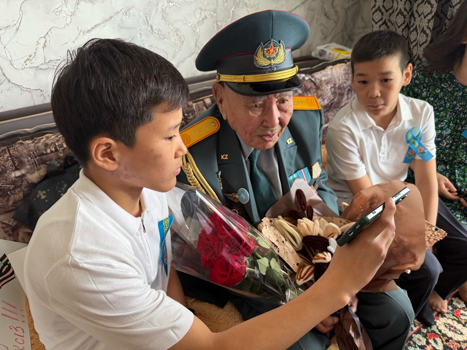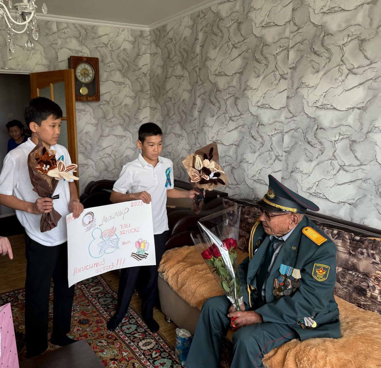 Патриоттық десант жалғасуда, себебі Жеңіс туралы естелік тек мерекелерде ғана емес, сонымен қатар оның қаһармандарына — тарихтың тірі сақтаушыларына деген шынайы құрмет пен ықыласта өмір сүреді.