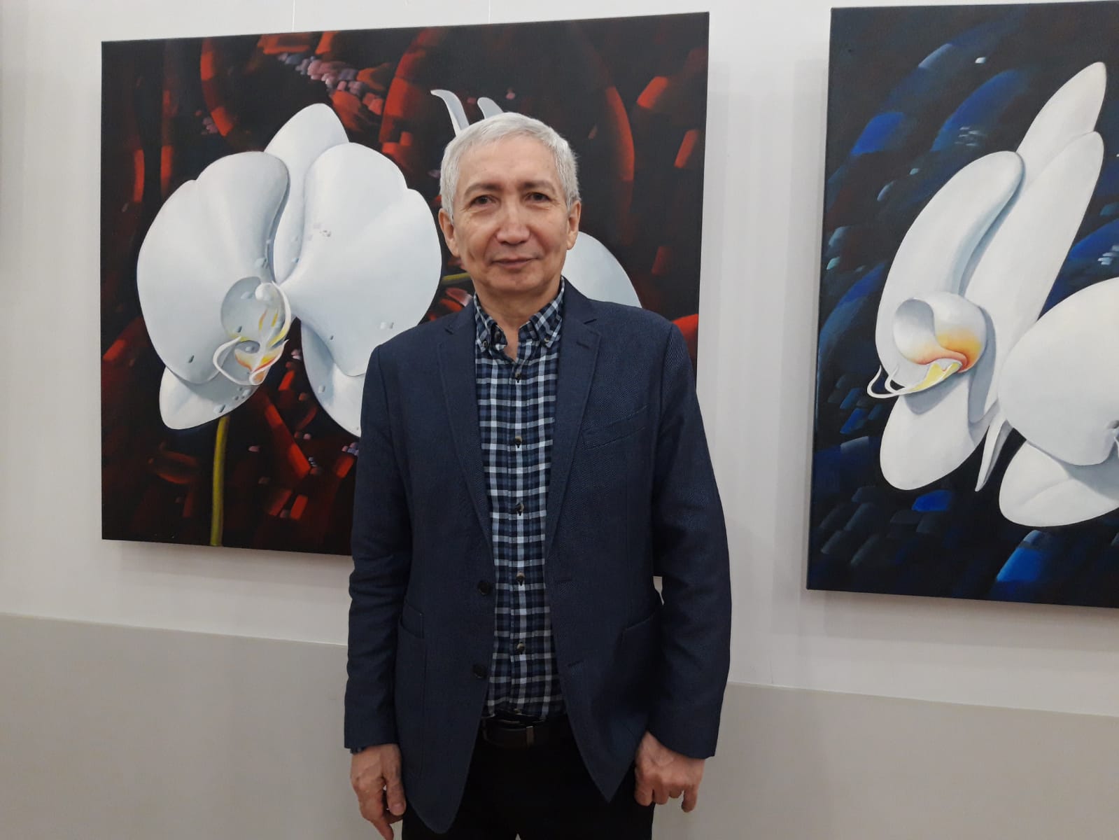– Көрмеде 1996-2024 жылдары салынған 145 жұмысым бар. Бұл туындылар арасында 20 жыл бойы салған суреттерімнен «Атлантида», «Мегаполис», «Дирижабль», «Уақыт», «Жұлдыздың құлауы» бар. Негізгі қабырғаға қойылған осы бес жұмыстың барлығы 2003 жылы басталып, 2023 жылы аяқталды. Көлемі 180х120. Жаңа жұмысым – «Орхидеялар» триптихі, мұнда сіз осы суреттердің эскиздері мен толық нұсқасын көре аласыз. Мен оларды салған кезде қалалық, ең минималистік интерьерді елестеттім. Ең ескі жұмыстарым 1996 жылы салынған, – деп атап өтті Айбек Бегалин.