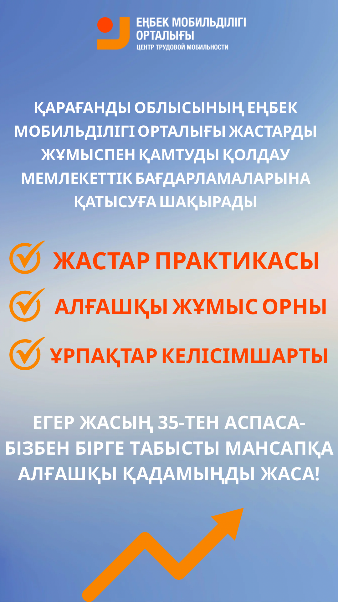 Кәсіби білімі жоқ, бірақ жұмыс істеуге ынталы жастар үшін таптырмас мүмкіндік! Бұл жоба сізге алғашқы еңбек тәжірибесін жинауға жол ашады.