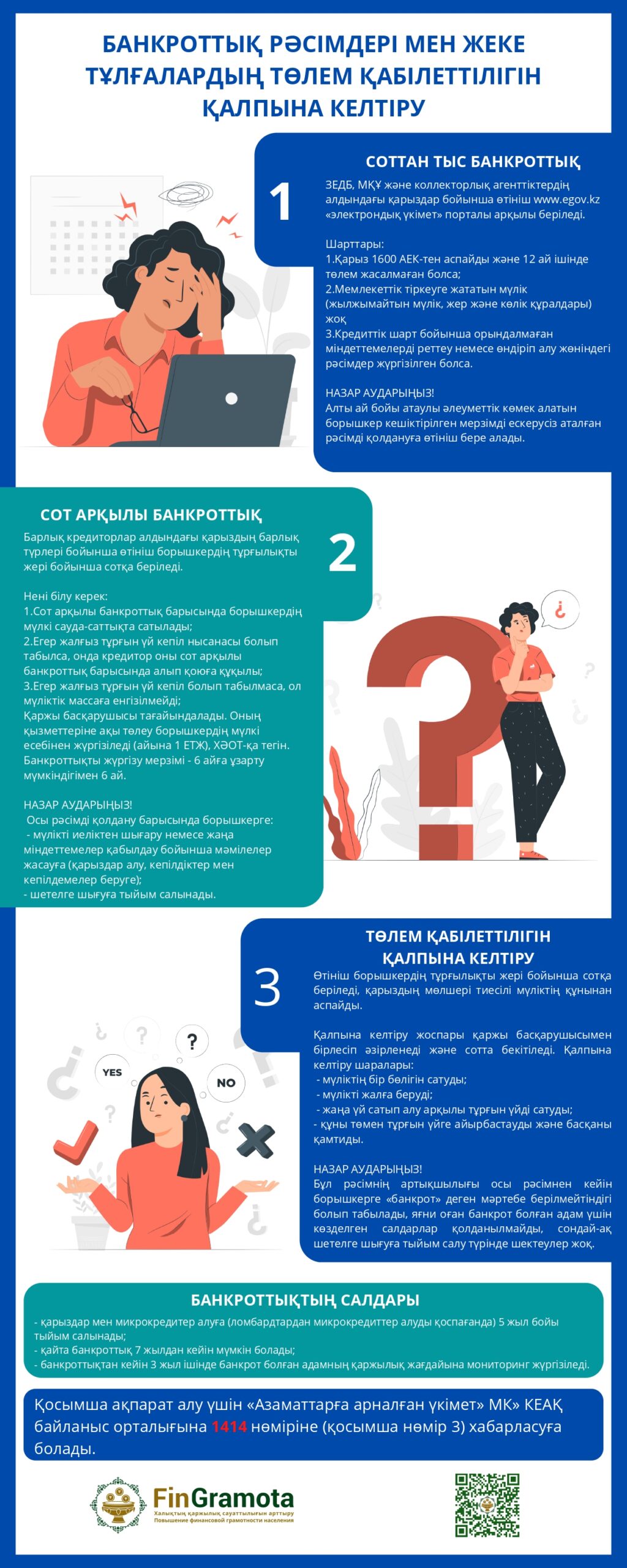 Берешекті реттеудің бірыңғай тәртібі туралы толығырақ «1459» нөмірі бойынша call-орталық арқылы не «Fingramota Online» мобильді қосымшасы  арқылы Агенттікке жүгіне отырып біле аласыз.