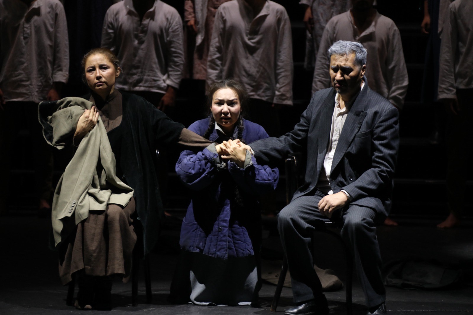 Тахауи Ахтановтың қаламынан туған бұл қойылым — 1945 жылғы Ұлы Отан соғысының зұлмат зардабын, соғыстың адамдар тағдырына түсірген ауыр қасіретін, қайғысын сахна тілімен суреттейді. Қойылымды сахналаған – театрдың көркемдік жетекшісі әрі режиссері Айдын Салбан өз пікірін білдірді.