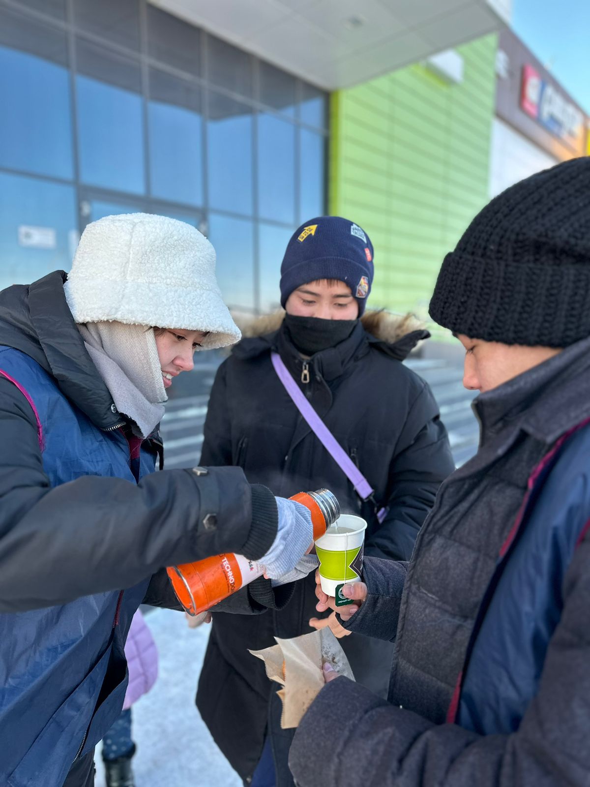 Қарағанды қаласының «Kind_QJ» жастар ресурстық орталығының еріктілер корпусы игі акция бастады. Олар коммуналдық қызметкерлер мен тұрғындарға ыстық шай мен бауырсақ тарату арқылы «Жылу сыйла» акциясын өткізуде.